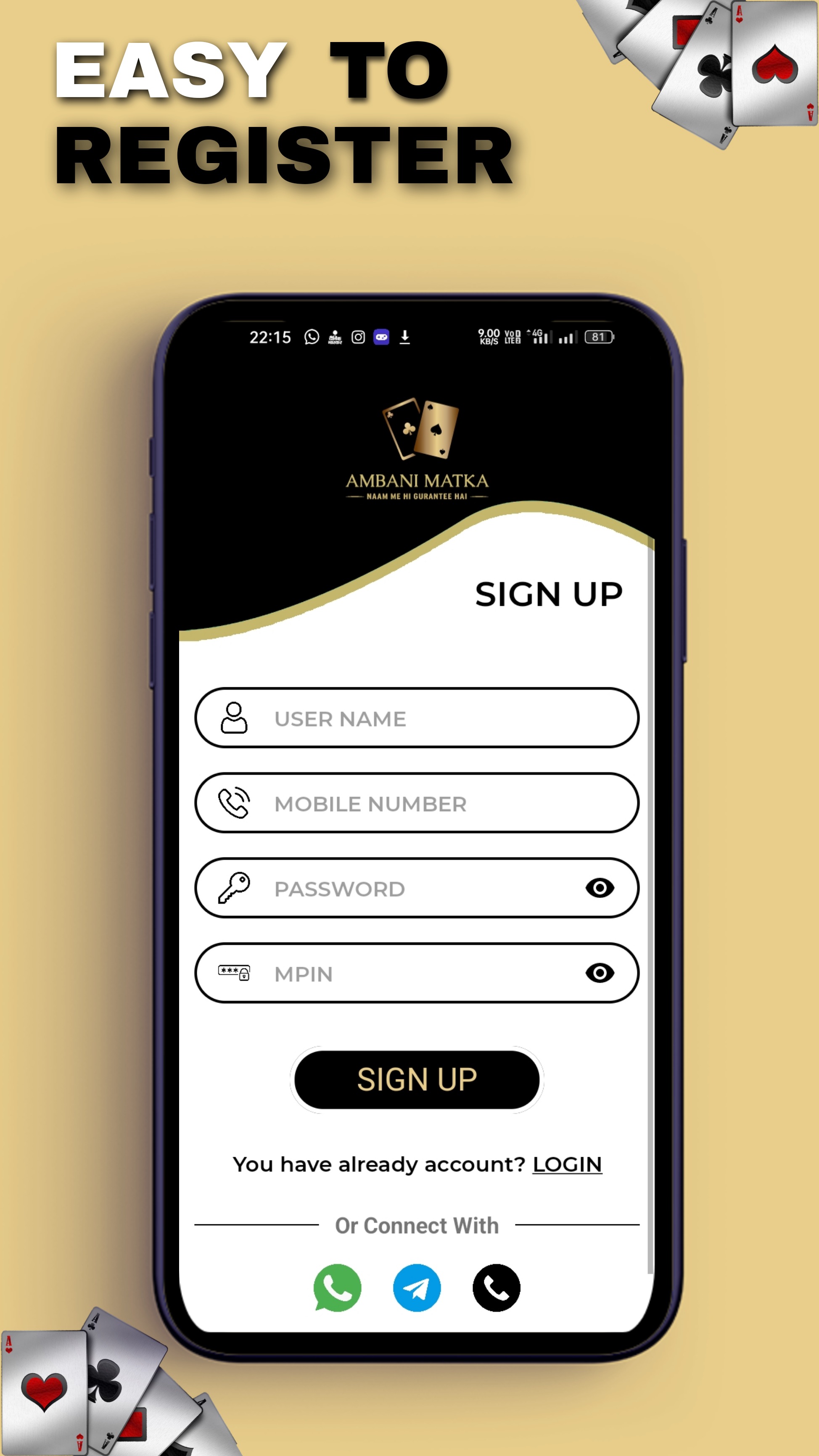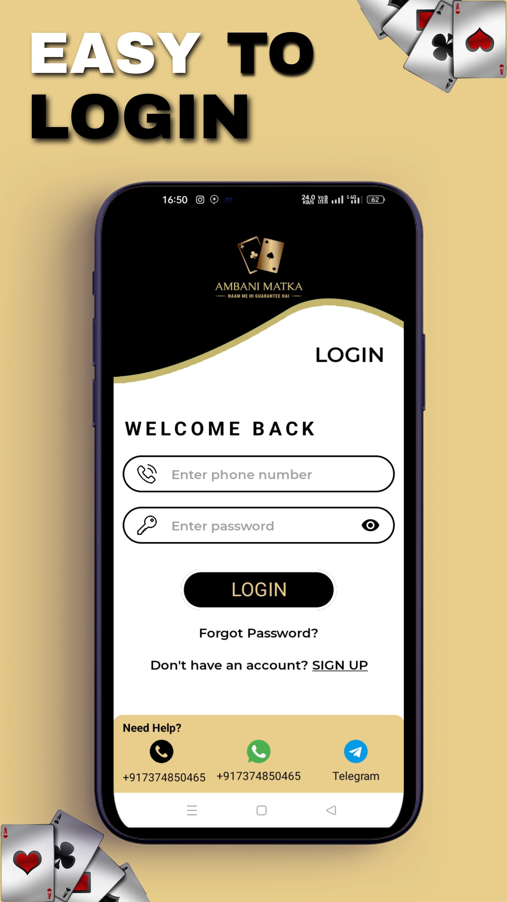Welcome AMBANI MATKA Official Company App. Enjoy Matka Games With Us. Welcome To AMBANI MATKA OFFICIAL APP. Download And Join With Us For Best And Trust Experience Of Matka Games. Why Choose Us - Our main aim is to take Matka game to the next level by taking it online. We are making a change in the industry by making Matka Game available on the internet. Step to Register with us- 1. First Download our App AMBANI MATKA OFFICIAL APP From Play Store. 2. If you are new user click on "SIGN UP" Button. 3. Enter your Name , Phone number and create a strong password. 4. Now you will receive a 4 digit OTP on the number you entered. 5. Enter the OTP and you are successfully registered. If you face any problem in registration you can contact us through the number we have given in the app . We will help you to register with us on AMBANI MATKA APP. Our Speciality - We at AMBANI MATKA OFFICIAL Company has a best customer support team. They are available to help you 24×7/365 Days. We provide best game rates for Matka like below 1. Single (ANK) - 10 ka 100 2. Jodi - 10 ka 1000 3. Single Panna - 10 ka 1600 4. Double Panna - 10 ka 3200 5. Triple Panna - 10 ka 7000 6. Half Sangam - 10 ka 10000 7. Full Sangam - 10 ka 100000 Fastest Result- AMBANI MATKA APP provide you the fastest and accurate results for Matka Markets and Bazar. Matka Markets - We have all the major markets like MILAN MORNING, MADHUR MORNING , KALYAN MORNING , SRIDEVI , TIME BAZAR , MADHUR DAY , MILAN DAY , RAJDHANI DAY , SUPREME DAY, KALYAN , SRIDEVI NIGHT , MADHUR NIGHT , SUPREME NIGHT , MILAN NIGHT , RAJDHANI NIGHT , KALYAN NIGHT , MAIN BAZAR , MAIN DUBAI. Note : We will add Markets If requested by our users. We need your consistent support to get going. If you have enjoyed any feature of the " AMBANI MATKA APP" Do not forget to rate us on Play store. Please help us by spreading this app amongst your friends. If you have any feedback or suggestions, please write to us at . We would love to hear from you!